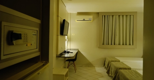 Apartamentos completos com Ar Condicionado, TV à Cabo, tela 32”, Internet Wireless de alta velocidade , Cofre Digital, Cama Box e Frigobar desabastecido ,Fechadura eletrônica Sistema economizador de energia Telefone despertador eletrônico Mesa para trabalhar Ducha higiênica Secador de cabelo Aquecimento central incluso café internet piscinas .