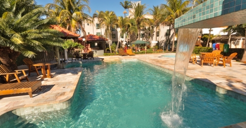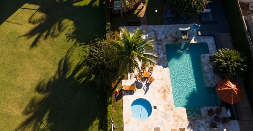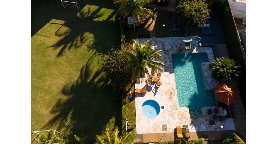 O hotel dispõe de duas piscinas, - adulta -5,00X10,00X1,20 e jacuzi ao ar livre para seis pessoas.